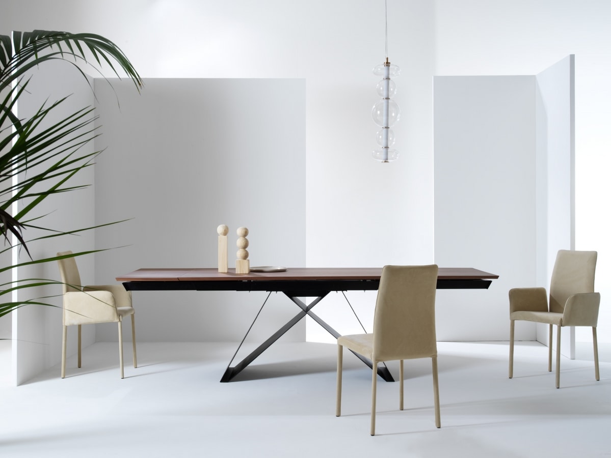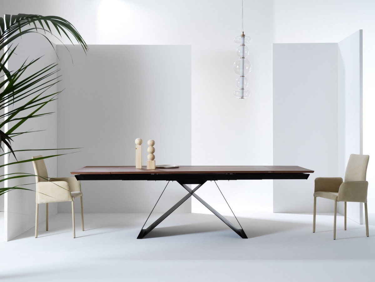 Tavolo allungabile con piano in legno o ceramica