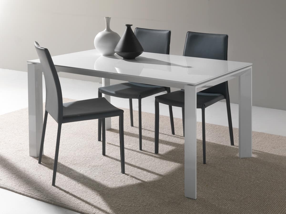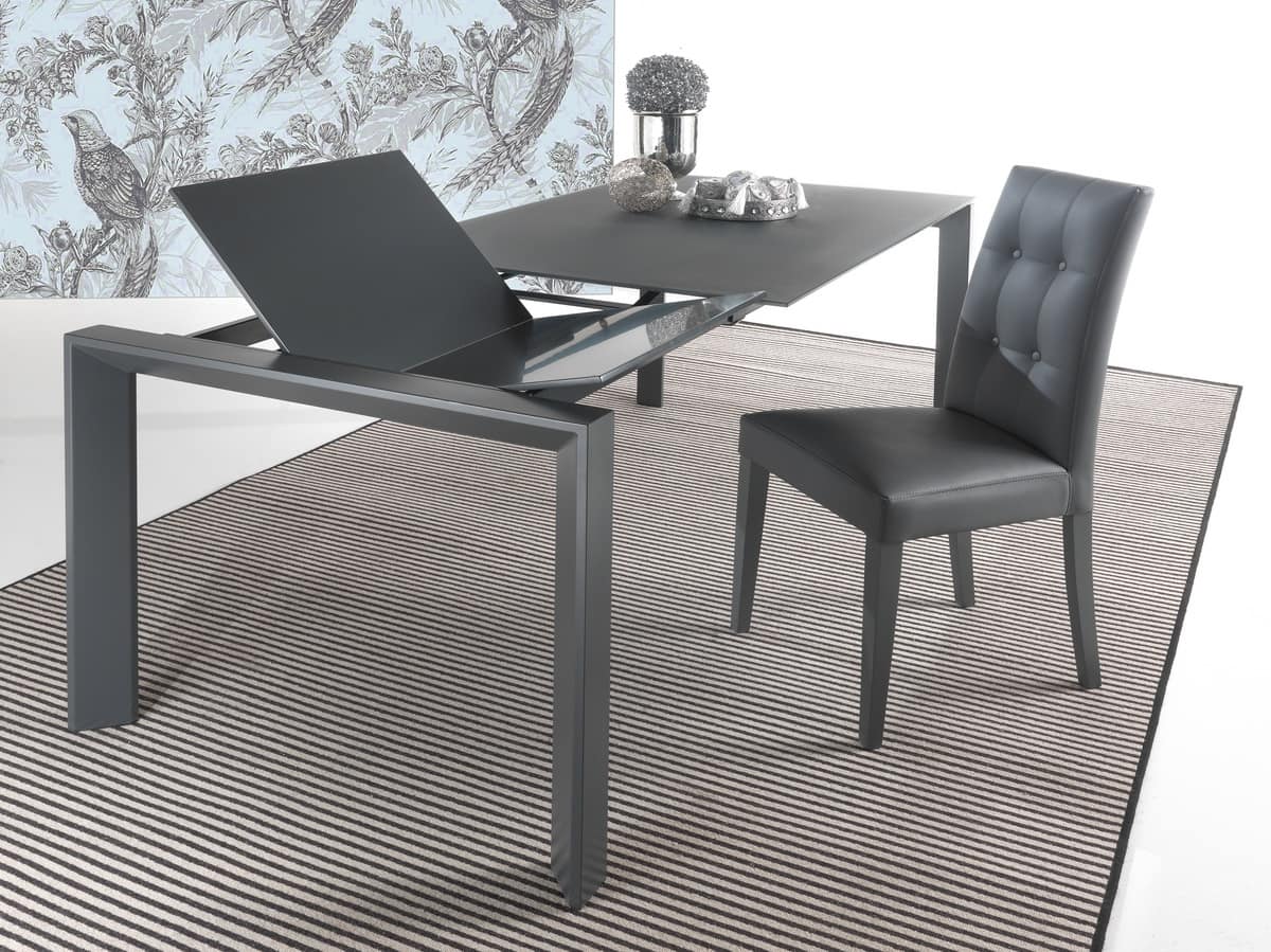 Tavolo da pranzo telescopico con allunga a pacchetto in mdf.