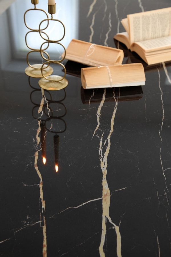 Disponibile nelle seguenti varianti colore: calacatta oro lucido, thunder night lucido, grey stone lucido.