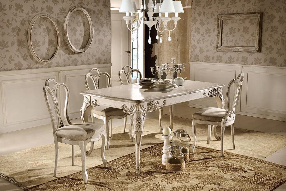 Tavolo rettangolare allungabile, laccato, classico