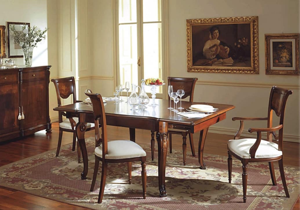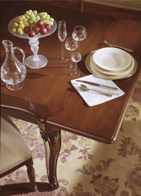 Tavolo quadrato allungabile, intarsiato e lucidato