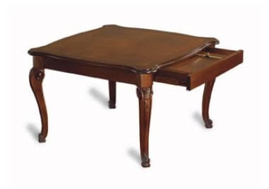 Richiedi prezzi Prodotti similiTavolo quadrato allungabile, in massello e piuma di noce, intagli ed intarsi eseguiti a mano, lucidatura satinata a cera.