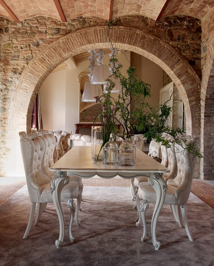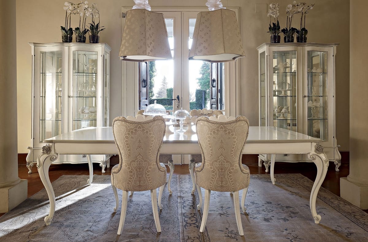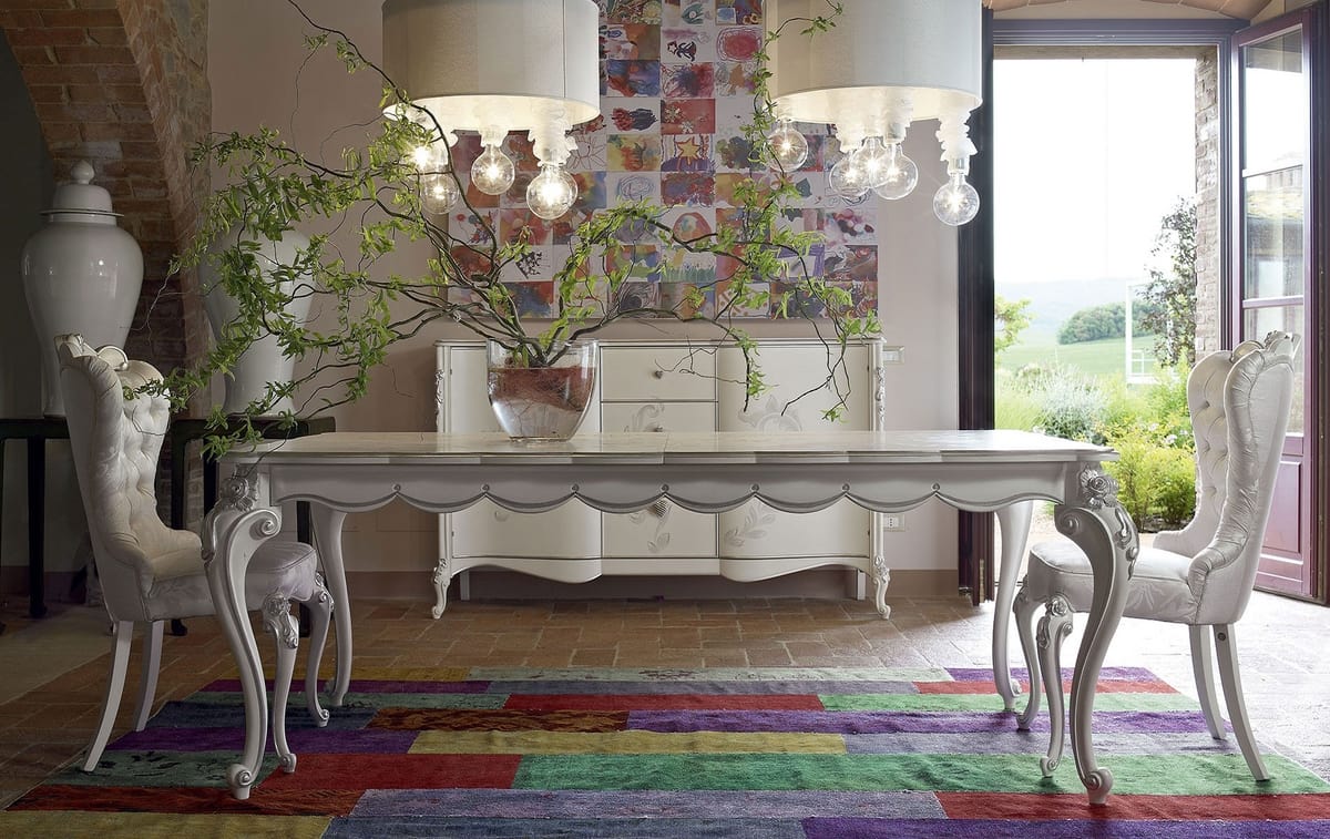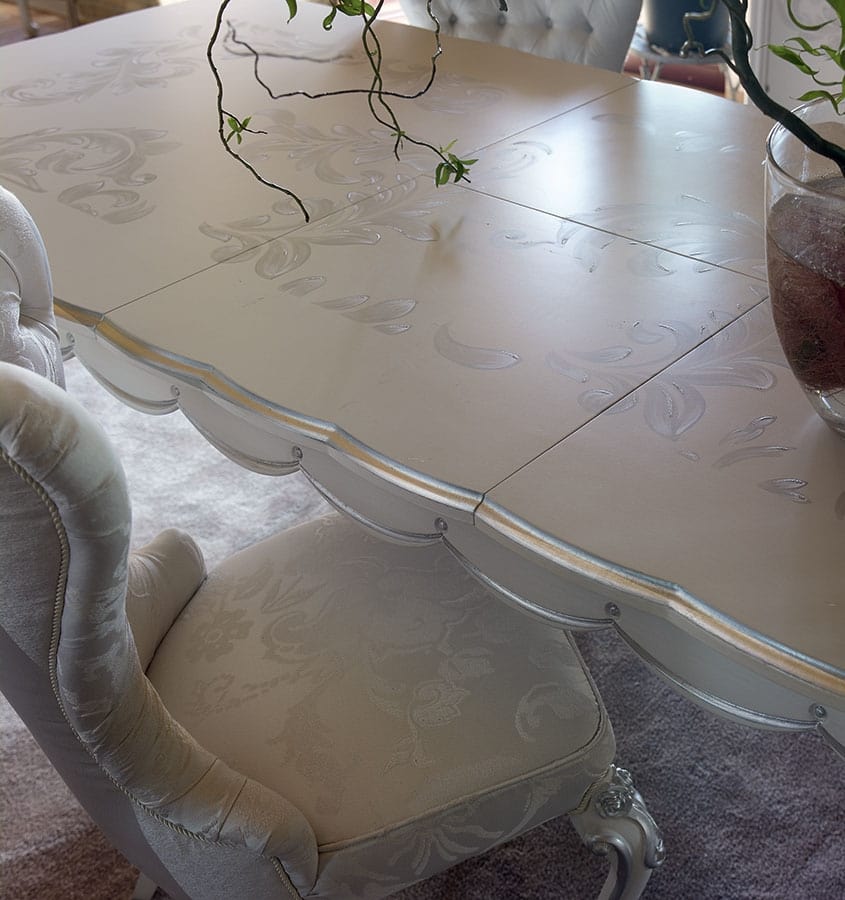 Tavolo classico, finitura bianco ed argento