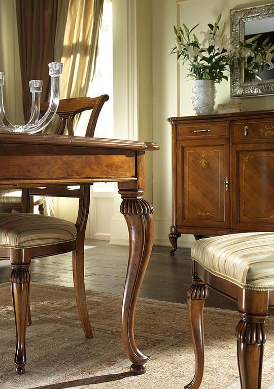 Tavolo rettangolare allungabile, gambe lavorate a mano