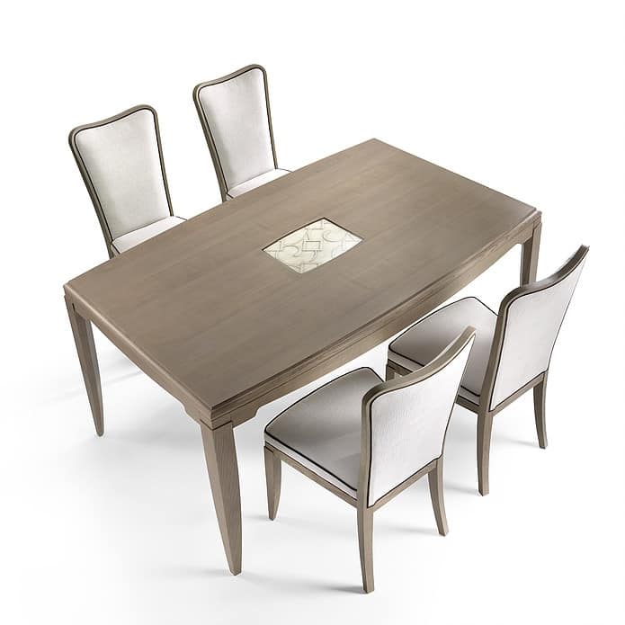 Richiedi prezzi Prodotti similiTavolo rettangolare con inserto sul piano ricoperto dal vetro.