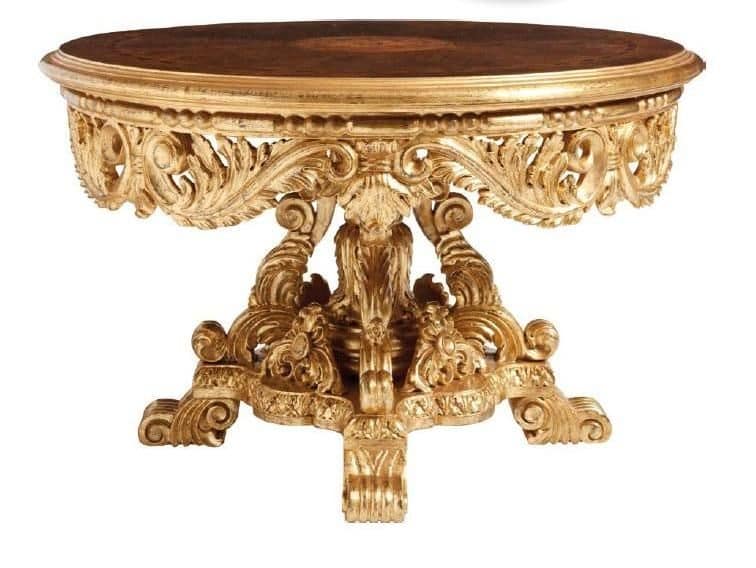 Richiedi prezzi Prodotti similiElegante tavolo da centro, in legno di tiglio intagliato a mano. Top in radica intarsiata o marmo.