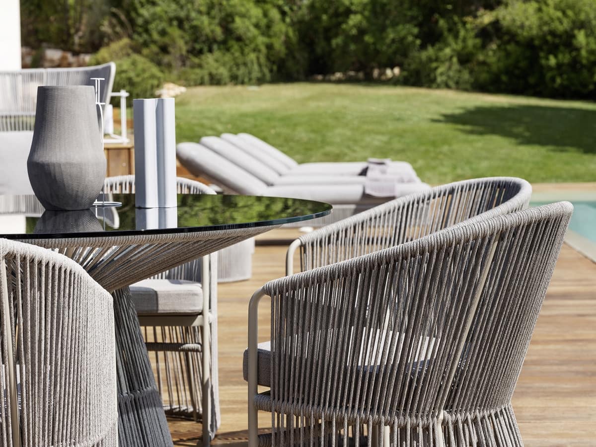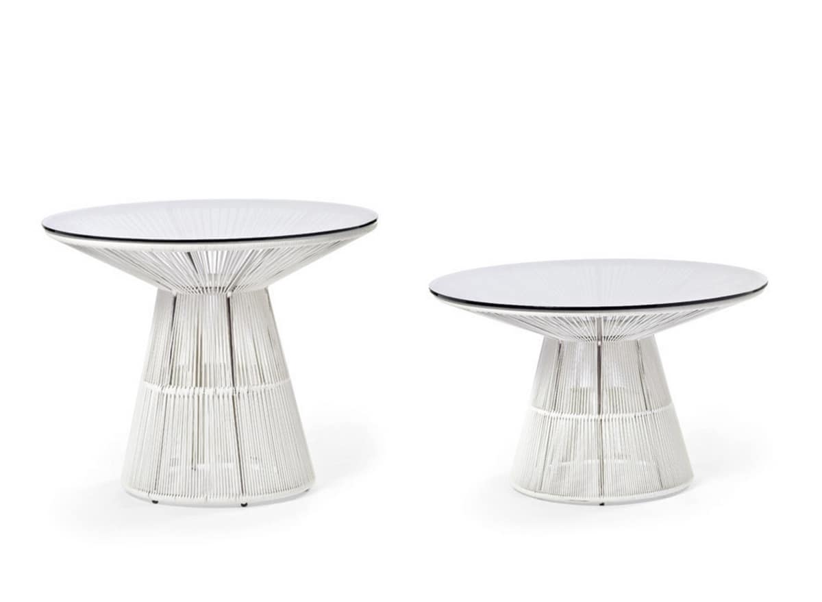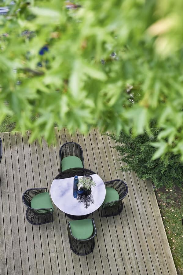 Tavolo rotondo in acciaio, con piano in vetro, per esterni