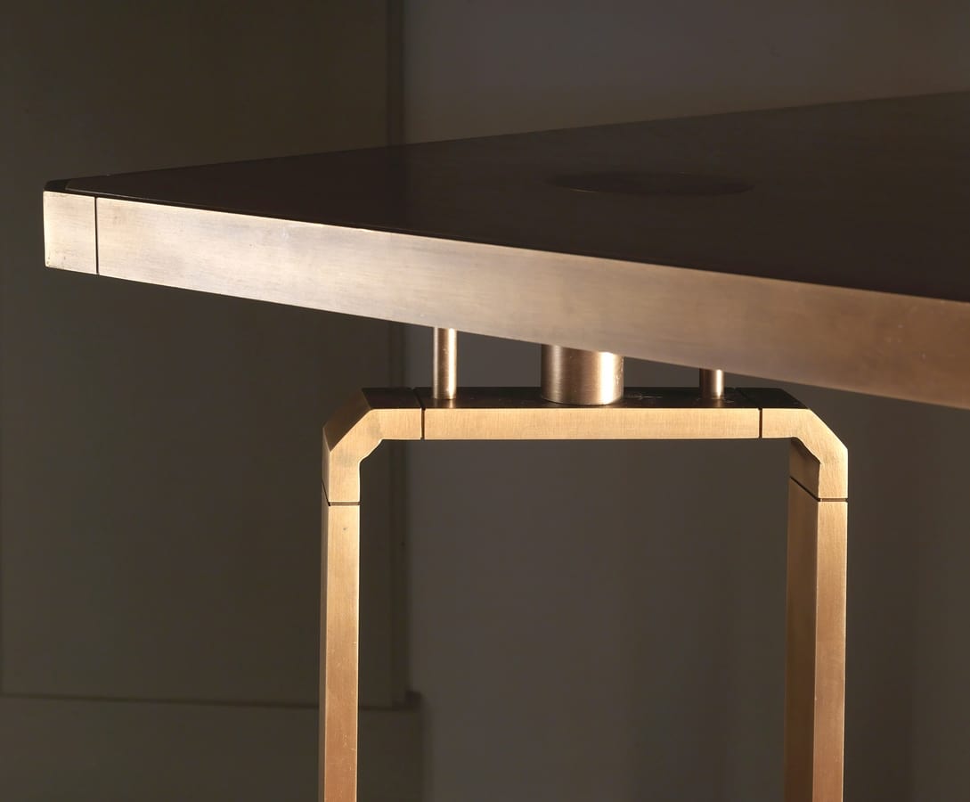Tavolo da pranzo in legno con decori in ottone