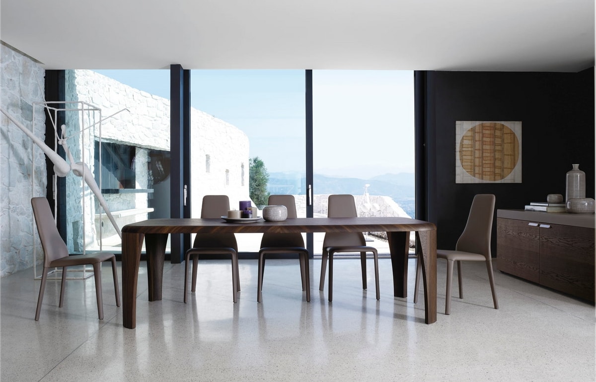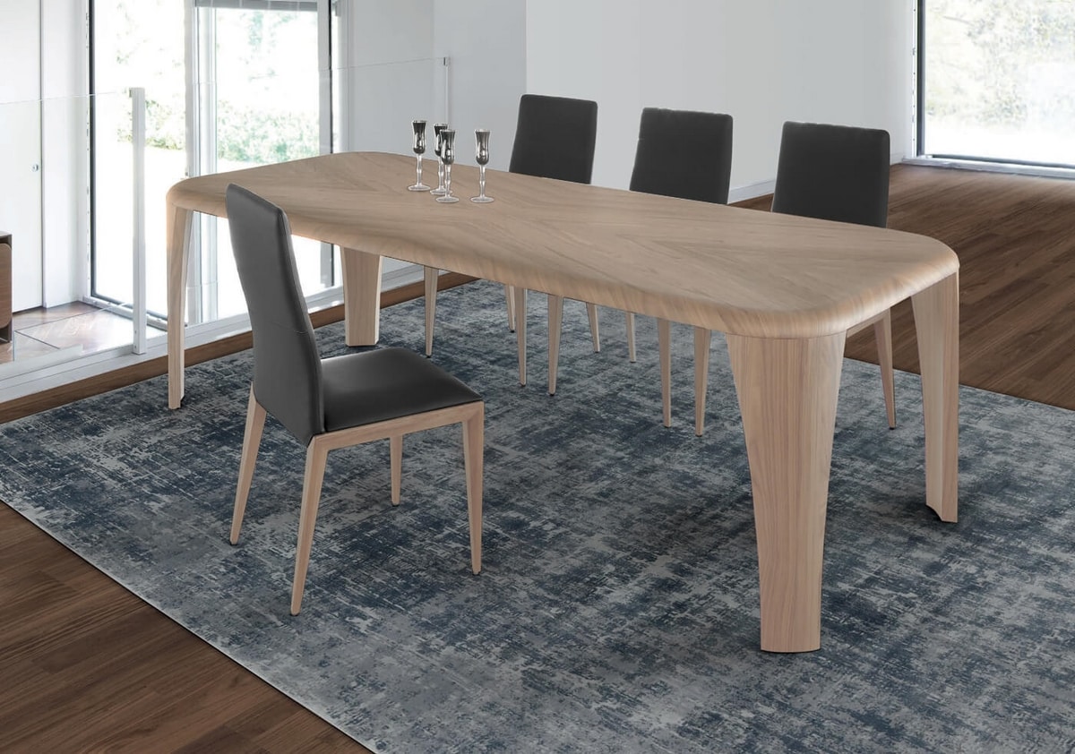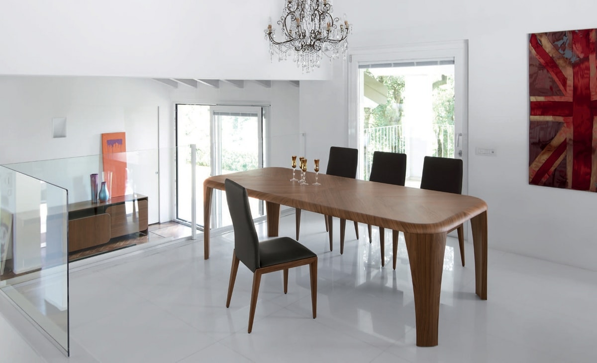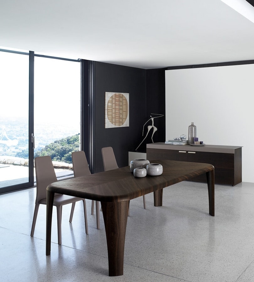 Igor, quando il design diventa un pensiero architettonico. Un tavolo realizzato in legno che nasce da uno schema libero, dove le linee sono dolcemente curvate e prive di qualsiasi spigolo e il legno è plasmato da mani esperte secondo i principi dell’esperienza e dell’ebanisteria più qualificata.