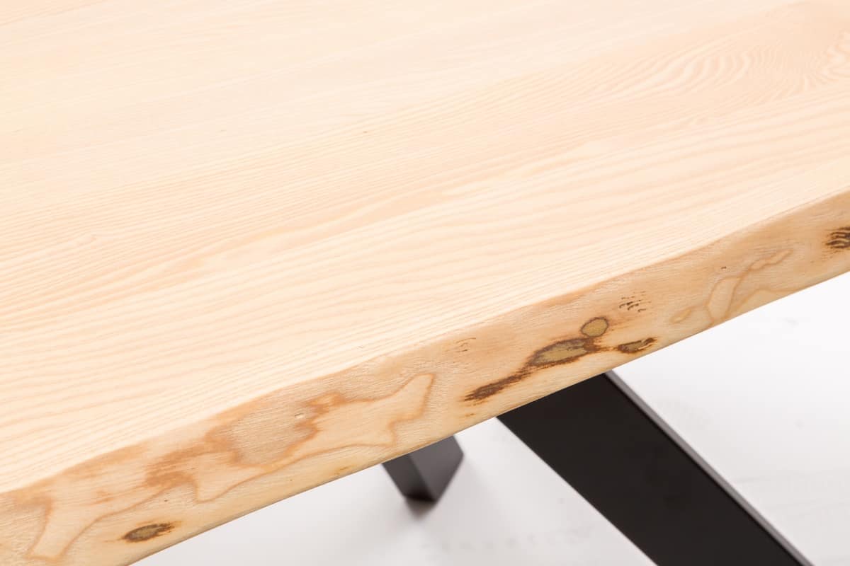 Piano in frassino massello spazzolato e tinto naturale con bordo corteccia. Spessore piano 4 cm.