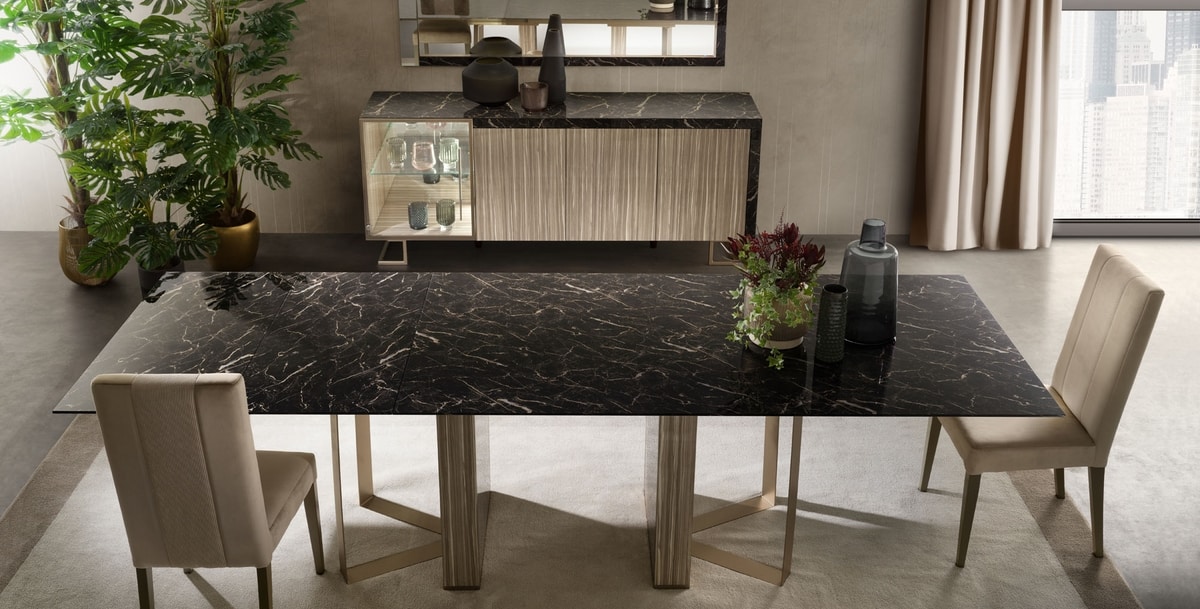 Elegante tavolo da pranzo allungabile con piano in marmo