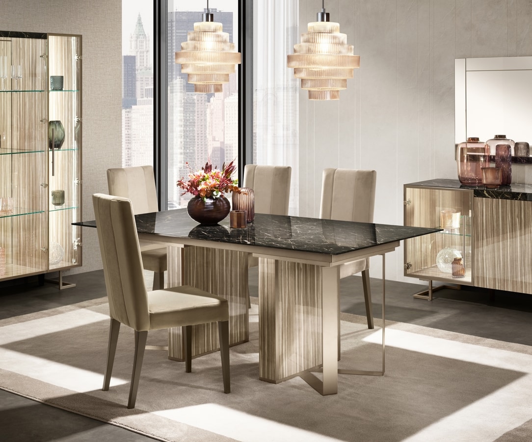 Tavolo da pranzo con piano in marmo Portoro Gold