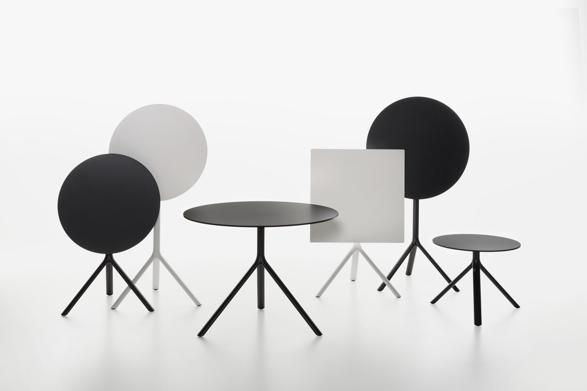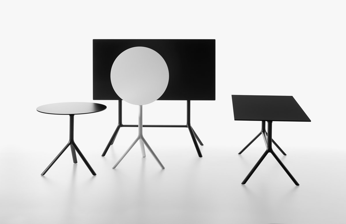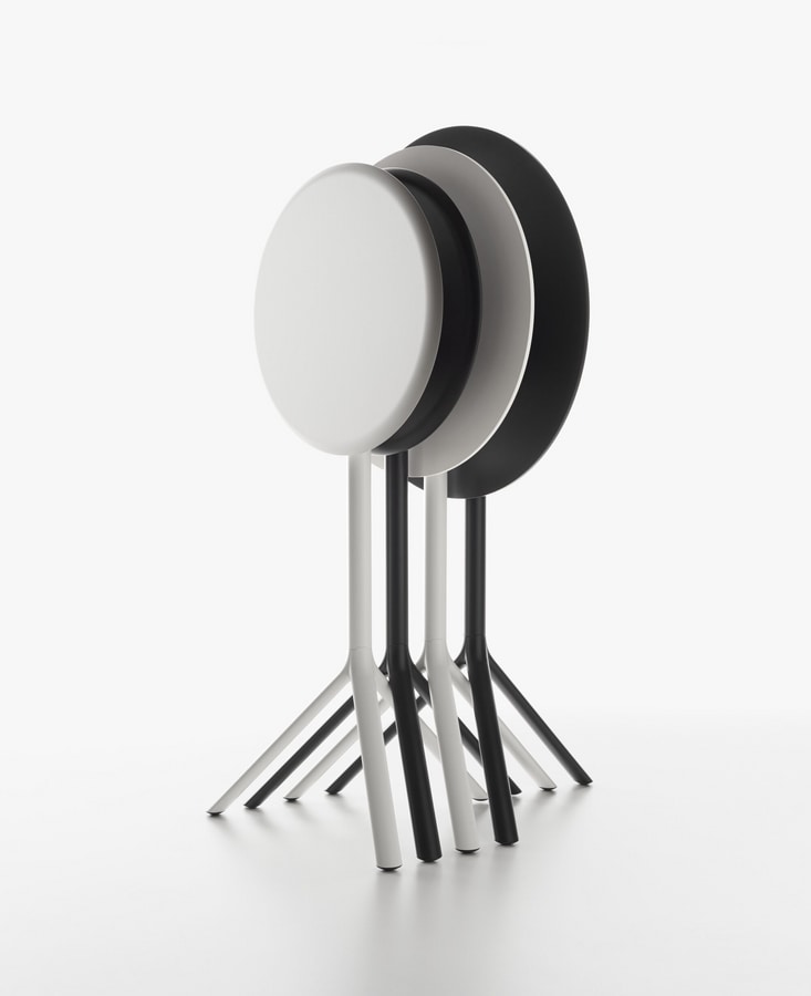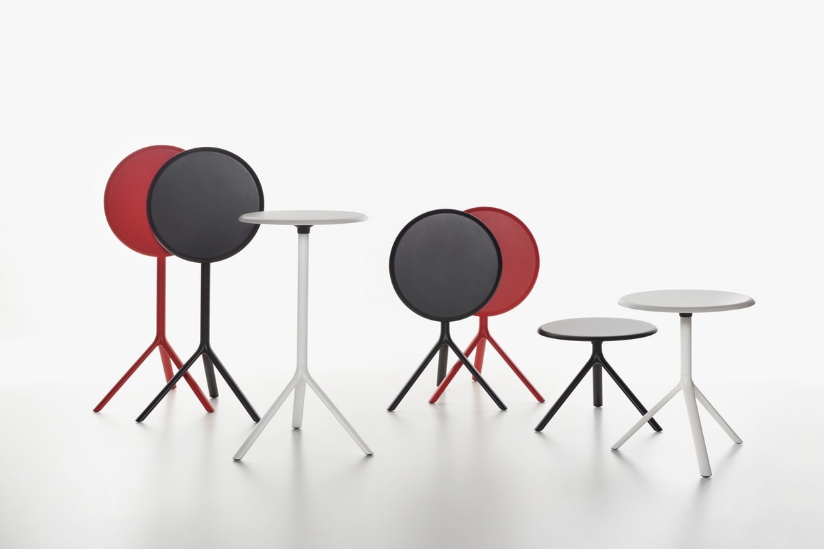 Sistema di tavolo pieghevole, struttura in acciaio verniciato a polvere, piani in acciaio, MDF o HPL Full color nei colori nero, bianco e rosso (solo metallo). Piano tavolo ribaltabile.