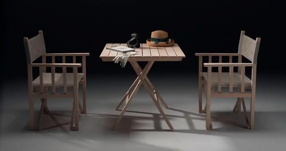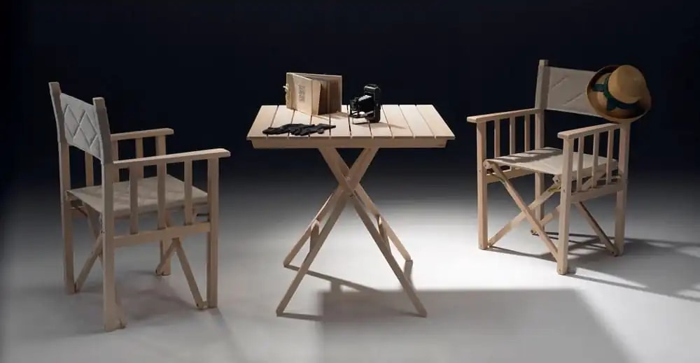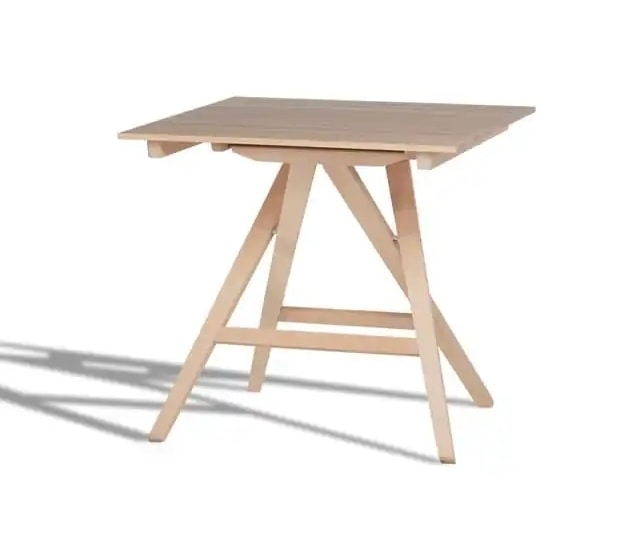 Tavolo moderno di design, elegante e dalle molteplici possibilità di utilizzo. Struttura pieghevole in legno faggio con piano a stecche. Per interni ed esterni.