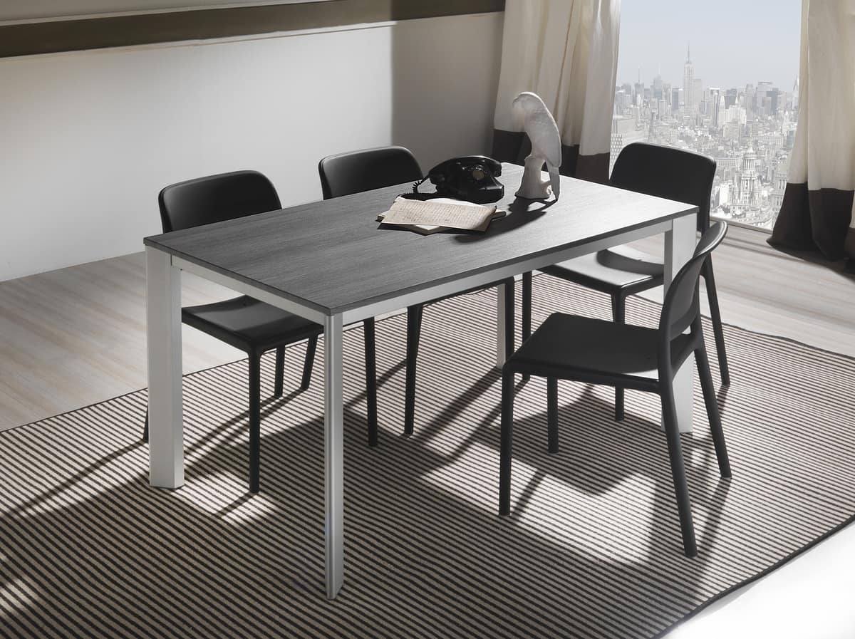 Tavolo telescopico in alluminio, con piano in nobilitato