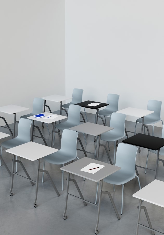 Grazie al piano ribaltabile, Pitagora Light può essere impilato orizzontalmente innumerevoli volte, facilitando la riorganizzazione degli ambienti.