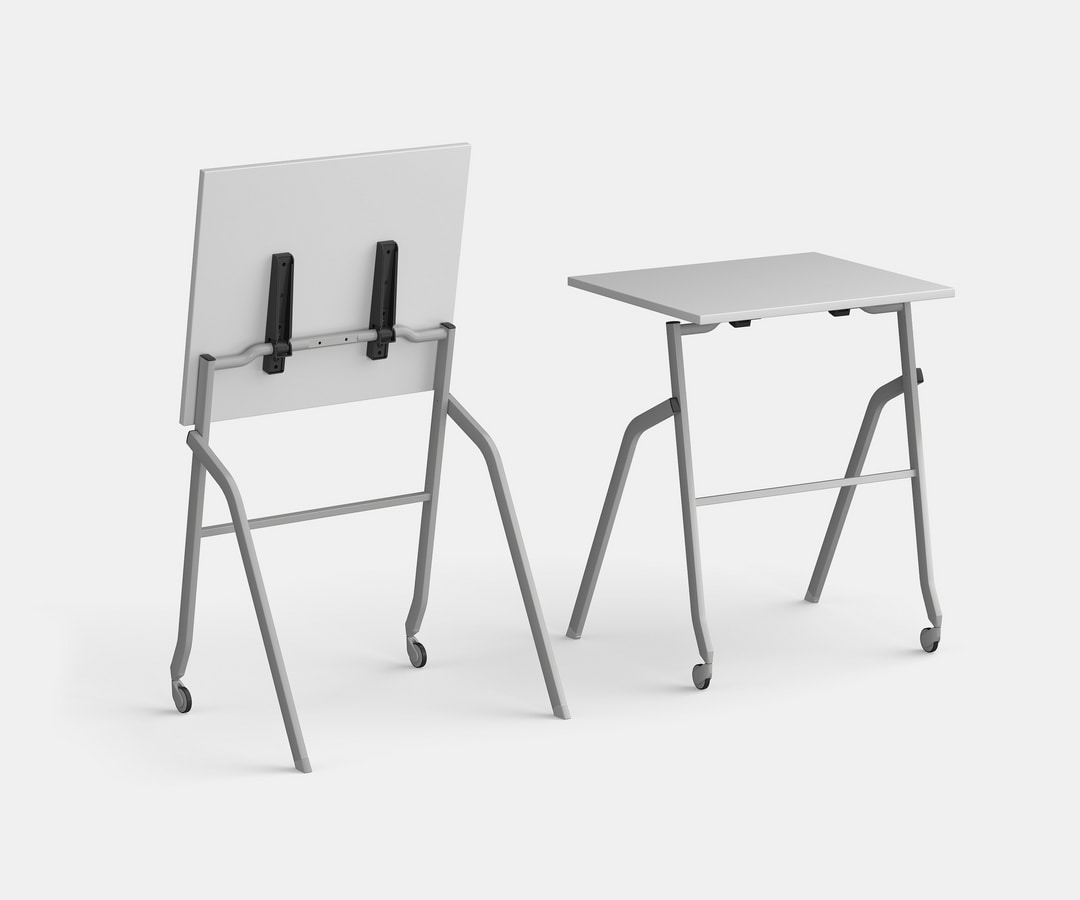 Tavolino con piano ribaltabile, impilabile, con ruote anteriori