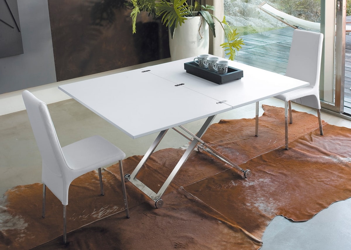 Punto è un tavolino regolabile in altezza (mediante uno speciale pistone a gas) che può facilmente diventare un vero tavolo perché dotato di piano raddoppiabile. Un’idea creativa che risolve al meglio le esigenze di spazio.