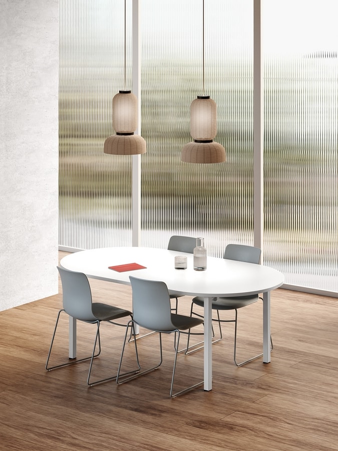 Tavolo con piano ovale, per ambienti scolastici e lavorativi