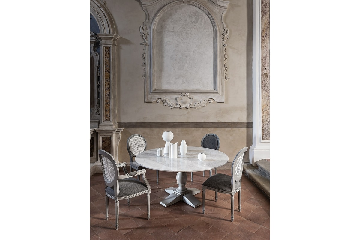 Tavolo tondo in stile classico, piano in marmo