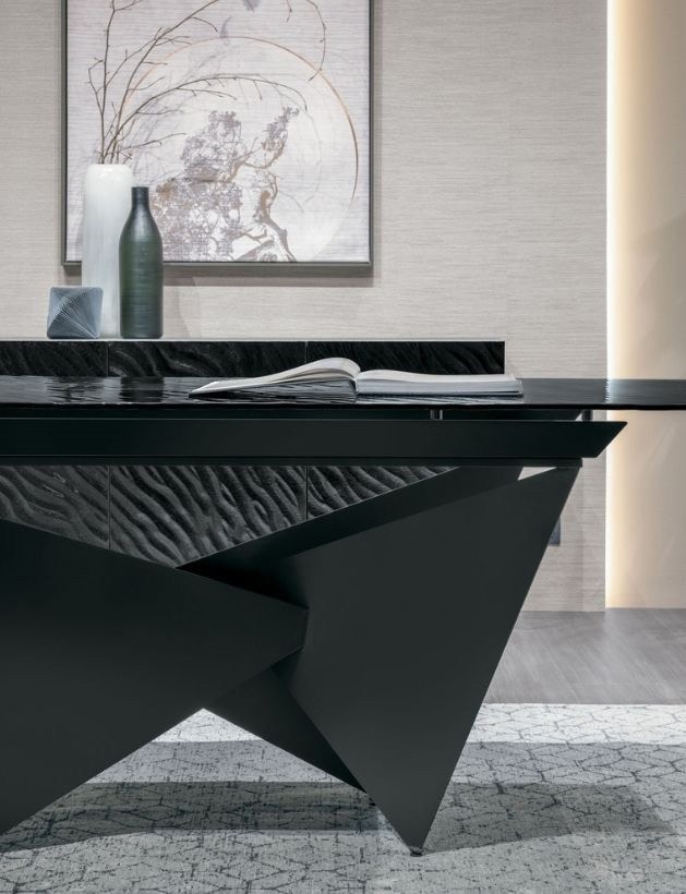 Disponibile sia in versione fissa che allungabile, Aliseo si adatta a spazi e occasioni mantenendo intatta la sua presenza scenica. Il piano può essere rettangolare o a botticella e realizzato in gres porcellanato, vetro ondulato o vetro dune: finiture che amplificano luce, riflessi ed eleganza. Versatile, sofisticato e di forte impatto estetico, Aliseo trasforma ogni momento conviviale in un’esperienza di stile.