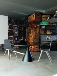 Tavolo con base a doppio cono e piano in ceramica-vetro