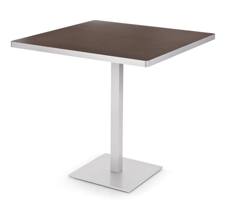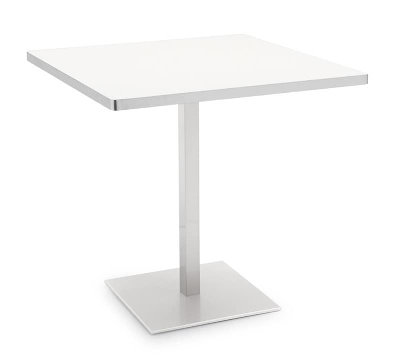 Tavolo da bar con piano quadrato. Tavolo con struttura in acciaio satinato e piano in nobilitato nero o bianco.