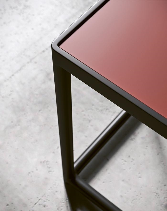 La rigorosità progettuale del coffee table Bardo si contrappone alla semplicità delle sue linee, il piano a filo con la struttura metallica produce un effetto di continuità estetica con la base, esaltando il gioco di pieni e vuoti.