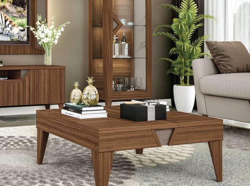 Tavolino quadrato in legno noce