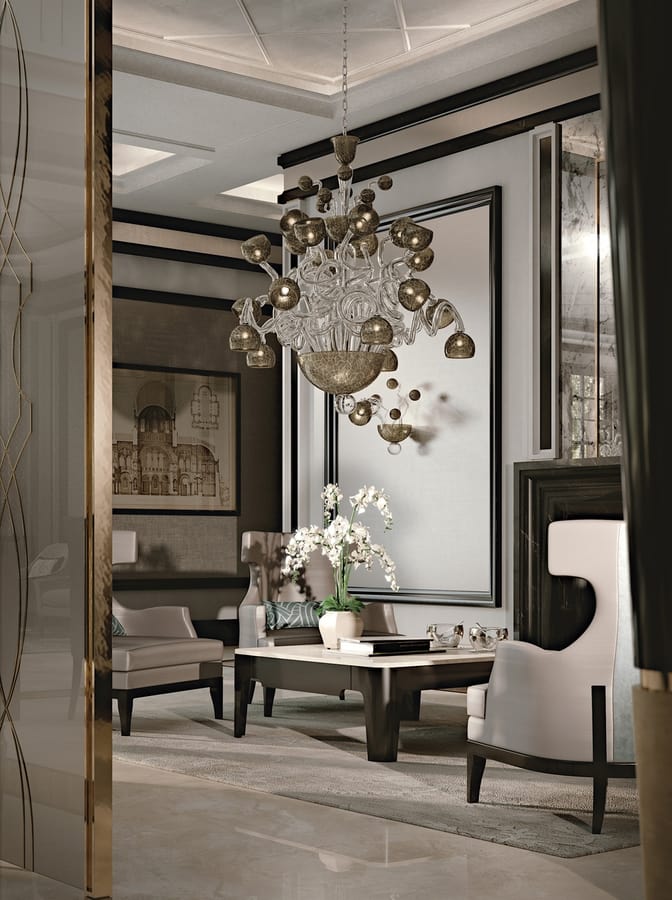 Il tavolino Palais Royal ha una linea semplice. La base in ebano lucido nasconde 2 cassetti, su di essa il piano marmo calacatta oro ne esalta l'eleganza. Accompagna salotti dedicati ad accogliere gli ospiti sia nelle residenze più moderne che negli uffici più prestigiosi. Disponibile in diverse finiture e diversi piani marmo.