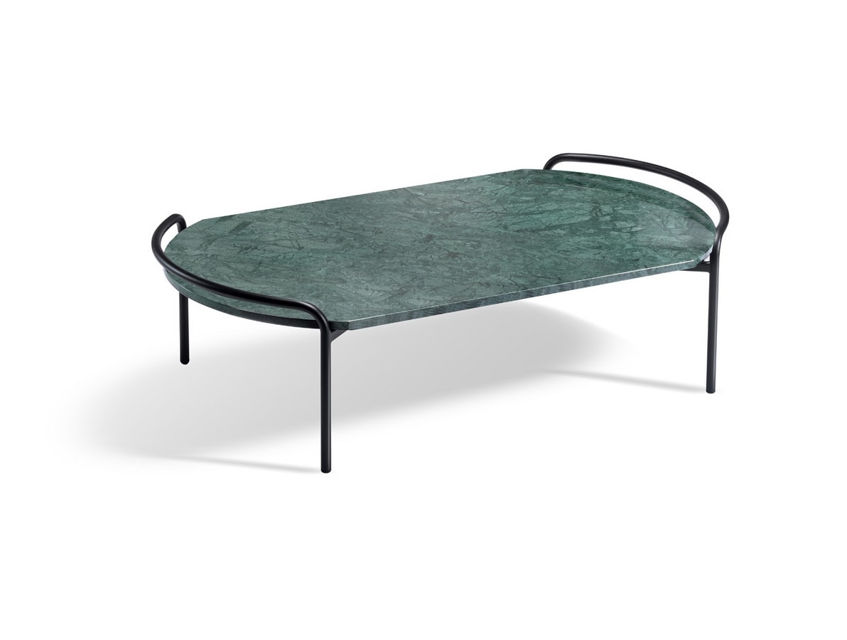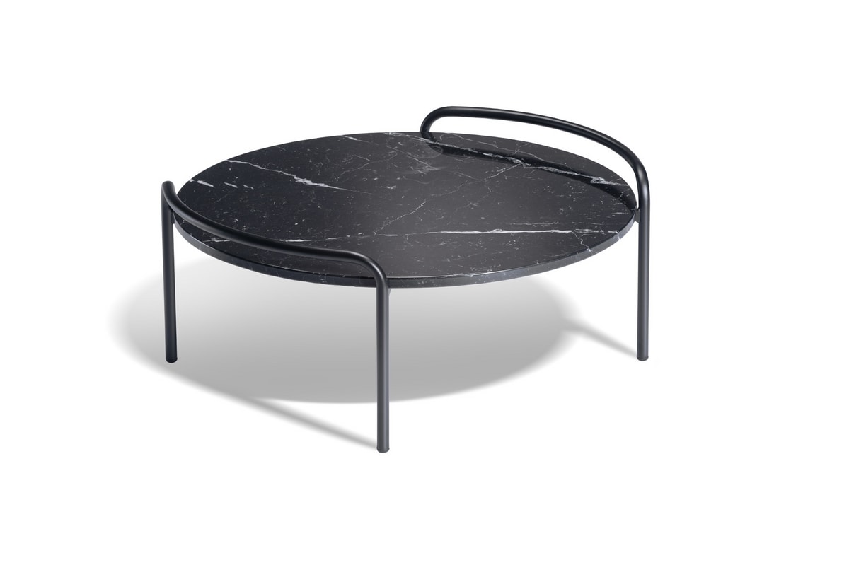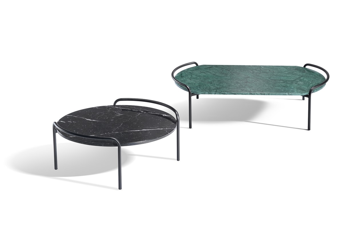Tavolino in metallo con piano rettangolare o rotondo in Marmo