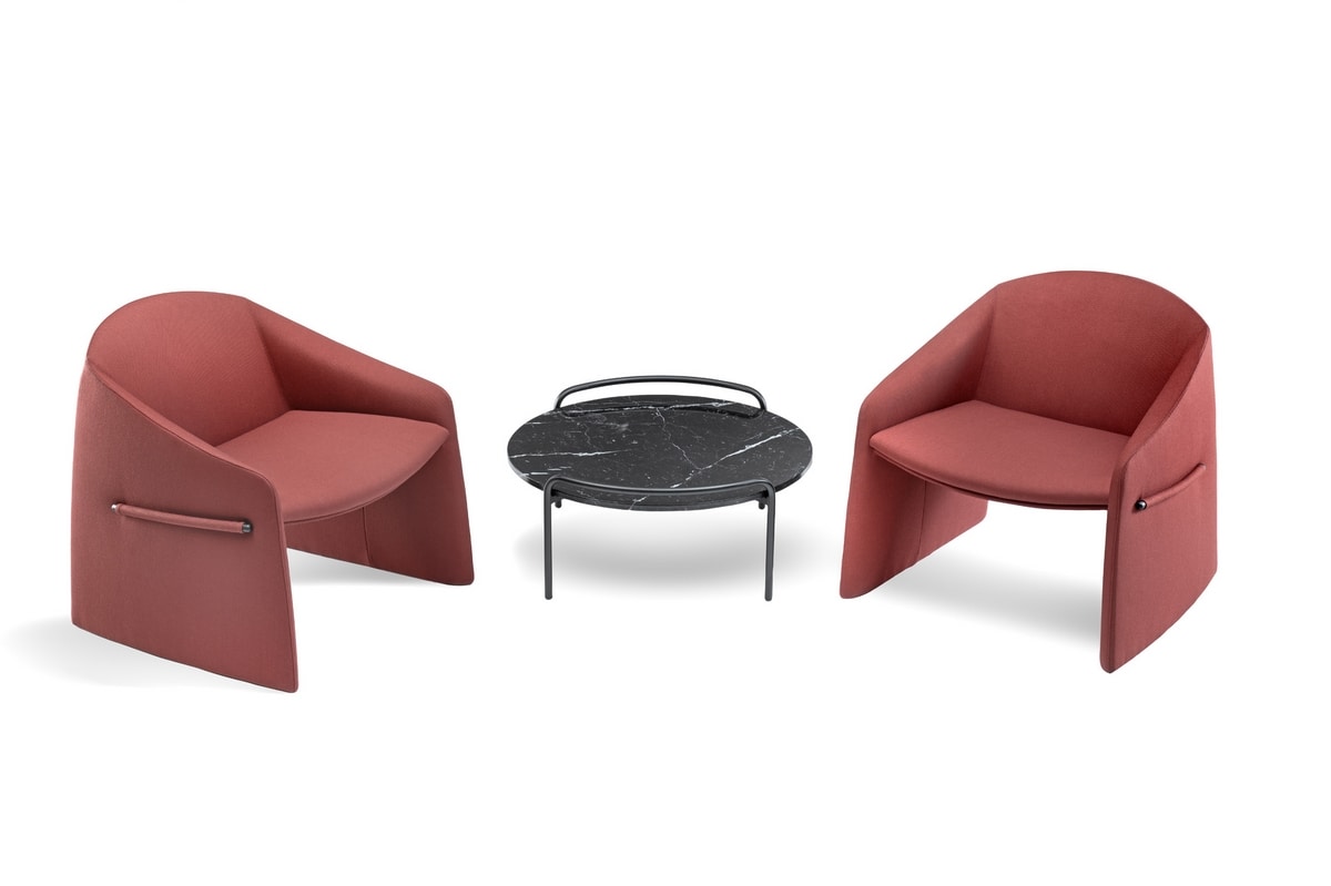 La collezione Pompon unisce design raffinato e funzionalità, rendendola perfetta per le aree d’attesa. Il telaio in metallo a 4 gambe è caratterizzato da pratiche "maniglie" integrate, che rendono più semplici e comodi gli spostamenti. I piani in marmo, disponibili nelle varianti tonda e rettangolare, aggiungono un tocco di prestigio, creando un equilibrio perfetto tra estetica e praticità.