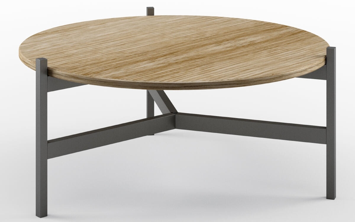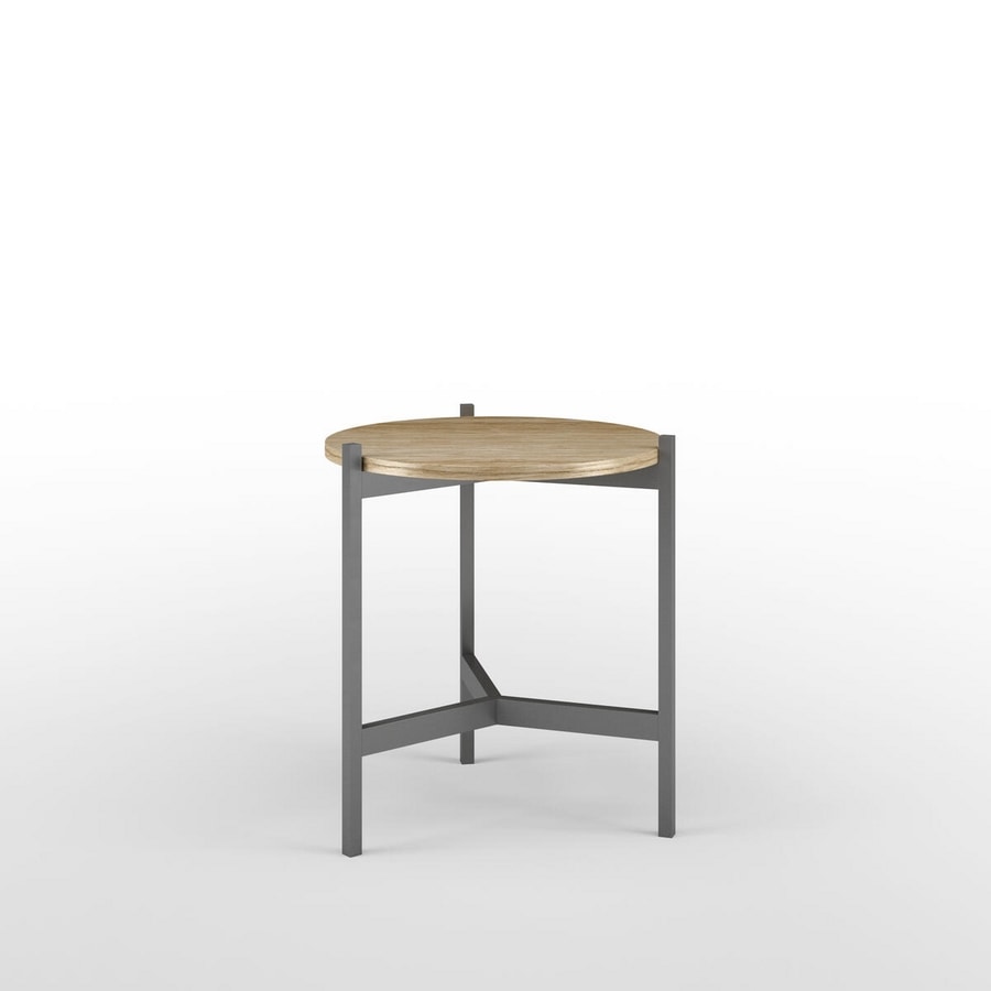 Collezione di tavolini con piano in legno. Struttura in metallo. Piano disponibile tondo, rettangolare o quadrato.