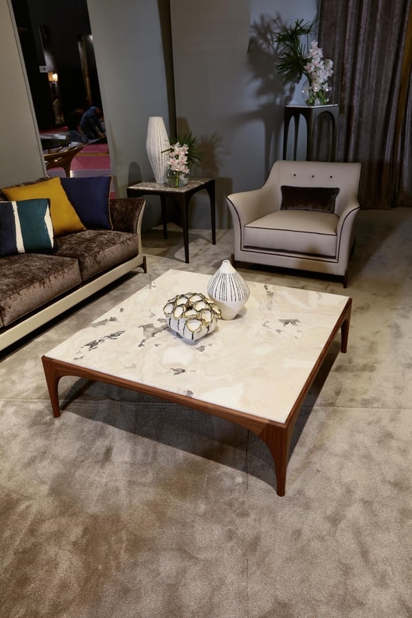 Tavolino in stile contemporaneo. Tavolino centrale da salotto con base in massello di Noce Canaletto in finitura opaca e Piano marmo Dover White. La collezione GEA nel 2019 si è allargata anche ai tavolini TETI, caratterizzati da una linea semplice ed elegante per abbinarsi perfettamente ai nostri salotti contemporanei di lusso. Realizzati in diverse essenze come il Frassino tinto grigio abbinato al marmo FIOR DI PESCO, sono disponibili in diverse dimensioni per adattarsi al meglio in ogni ambiente.