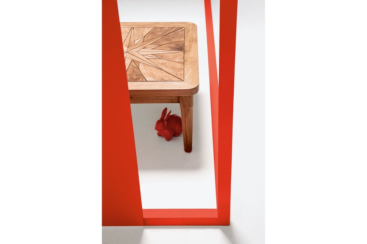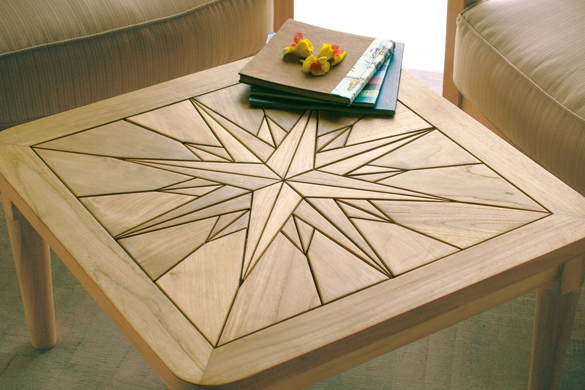 Mistral, tavolo basso da cocktail de Il Giardino di Legno, ha tratto ispirazione dalla rosa dei venti, il simbolo nautico per eccellenza, che la sapiente manualità dei falegnami ha fuso con le eccellenti caratteristiche del legno massello di teak. La bellezza materica del piano in legno massello è esaltata dalla lavorazione artigianale per cui il disegno della rosa dei venti è creato dal mosaico del legno e non, come si potrebbe pensare, da un intaglio o da un pantografo. Misura 70 centimetri di lato per 50 di altezza. Il tavolo basso è disponibile per la realizzazione su misura o con personalizzazione del disegno del piano, secondo il concept Il Giardino di Legno.