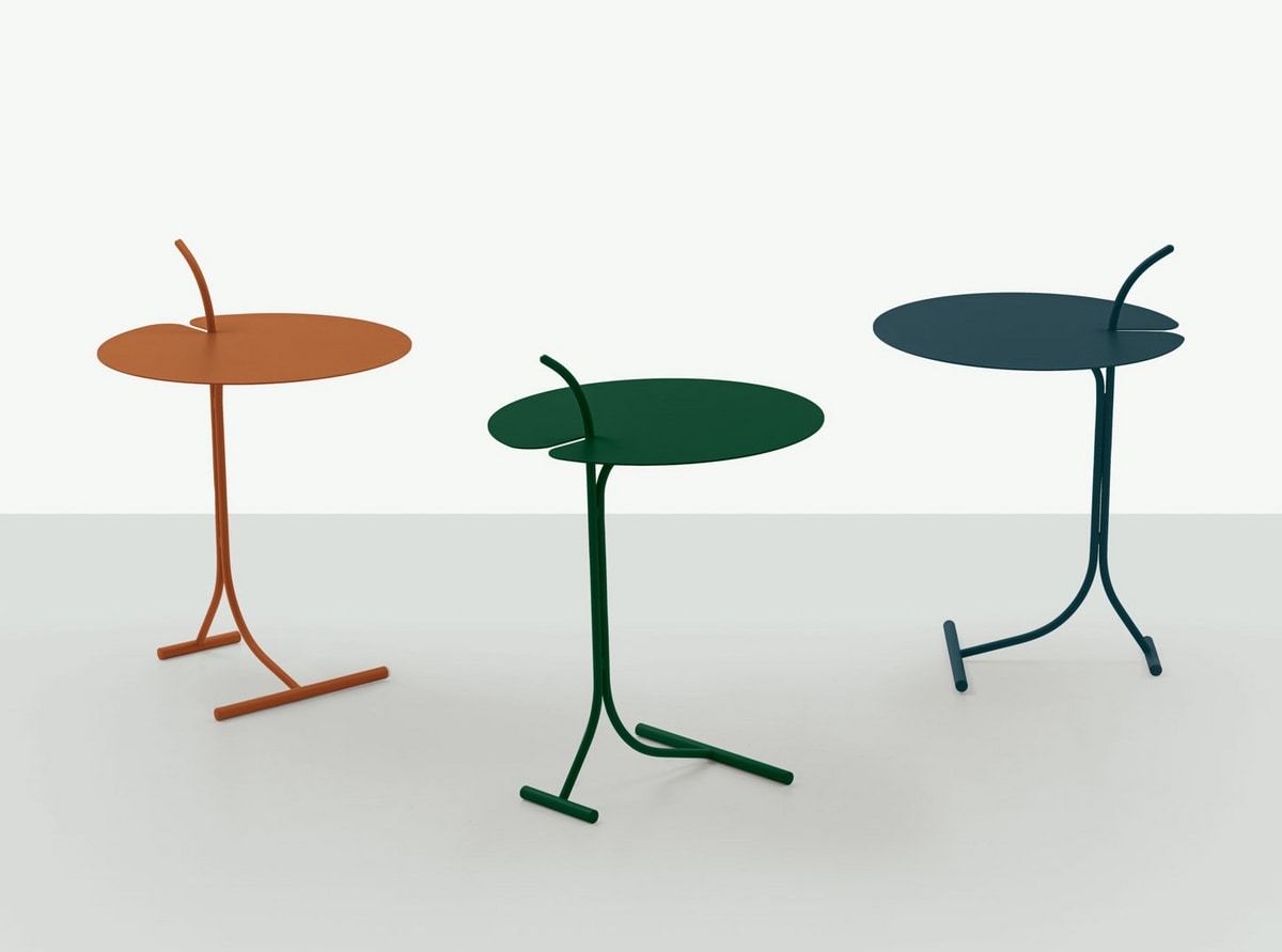Tavolino tondo in metallo, dal design contemporaneo