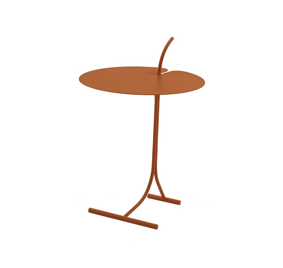 Tavolino completamente realizzato in metallo verniciato, progettato per adattarsi all’orlo del bracciolo del divano. Dotato di pratica maniglia per facilitarne lo spostamento. Disponibile nei colori Terracotta, Abete e Blu di Prussia.