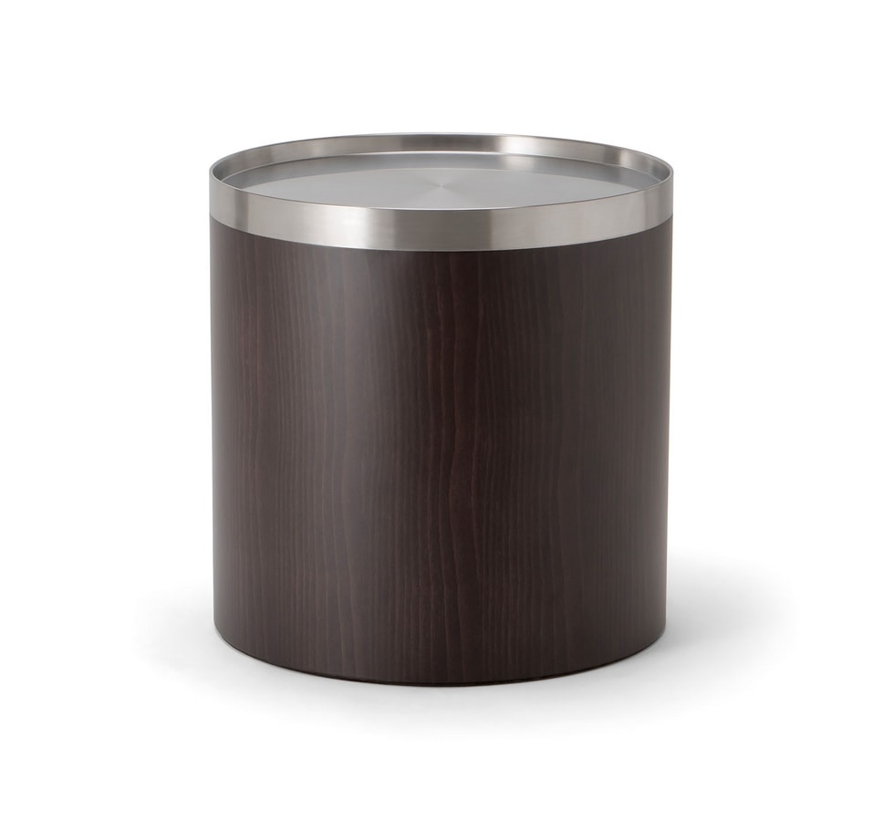 Collezione di tavoli in legno, abbinati a piani in metallo o rivestiti con raffinate stoffe. Piccolo e funzionale, il tavolino Oslo č un pezzo essenziale realizzato con stile e sapienza costruttiva. Il guscio in legno avvolge eleganti piani in metallo o imbottiti.