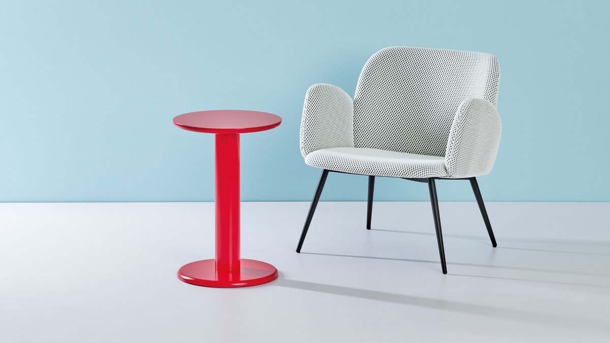 Tavolino con base e piano in MDF colonna in metallo