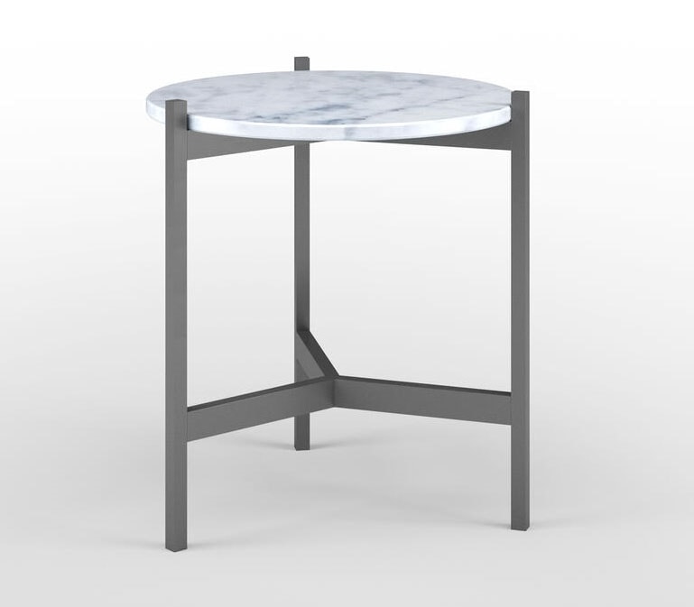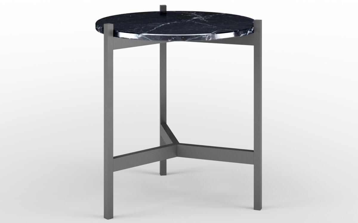 Collezione di tavolini con piano tondo in marmo lucido od opaco. Struttura in metallo. Piano disponibile tondo, rettangolare o quadrato.