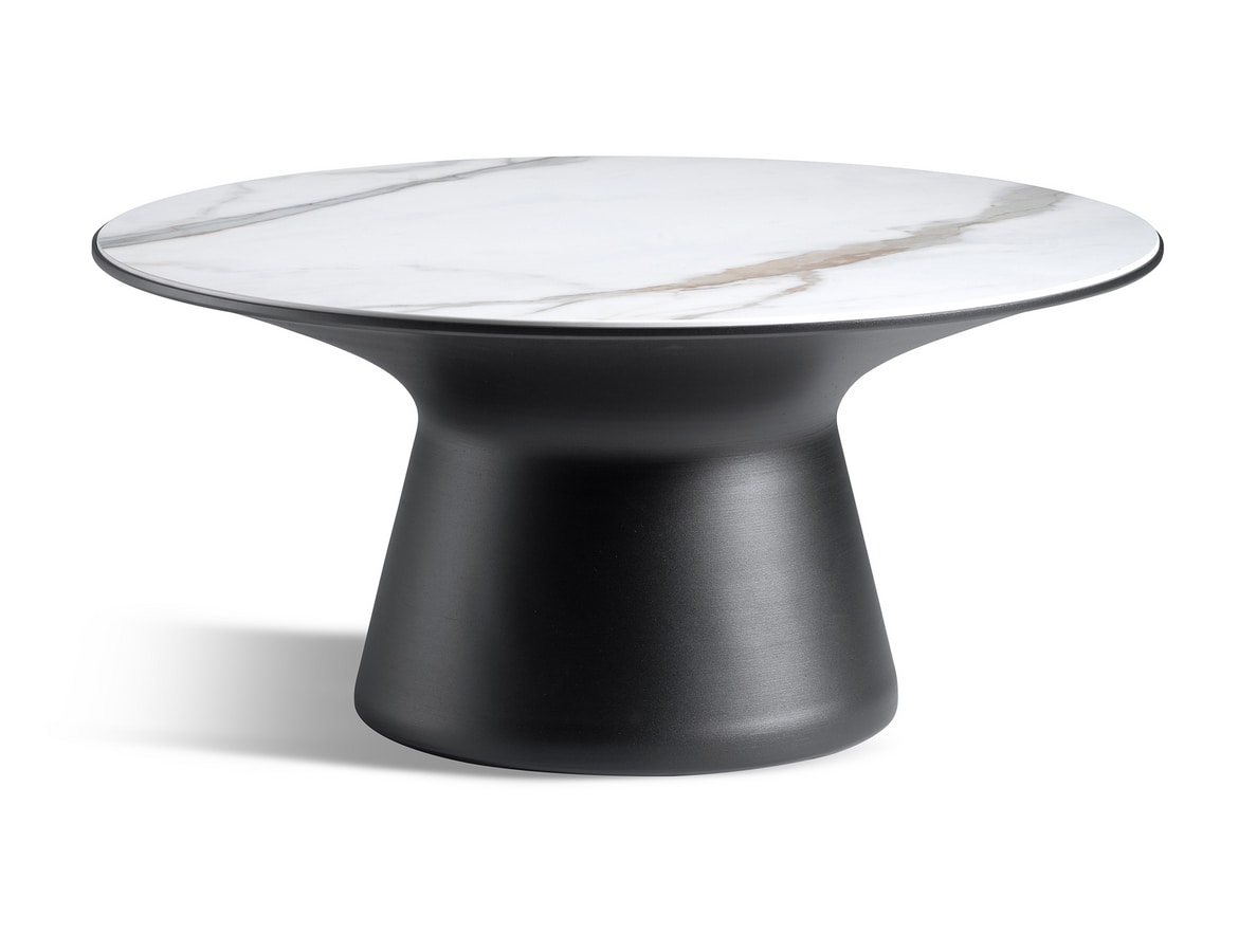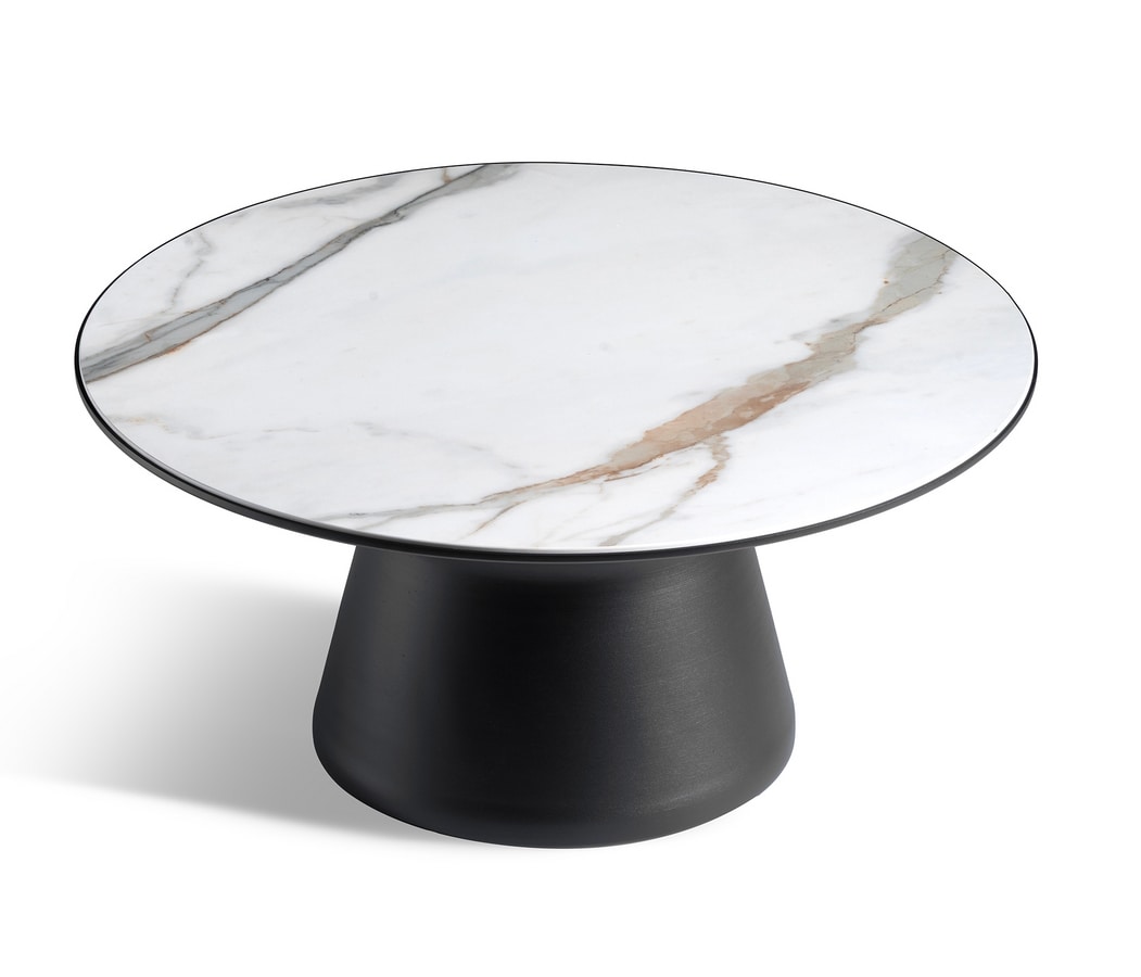 Tavolo rotondo in metallo con piano in gres porcellanato