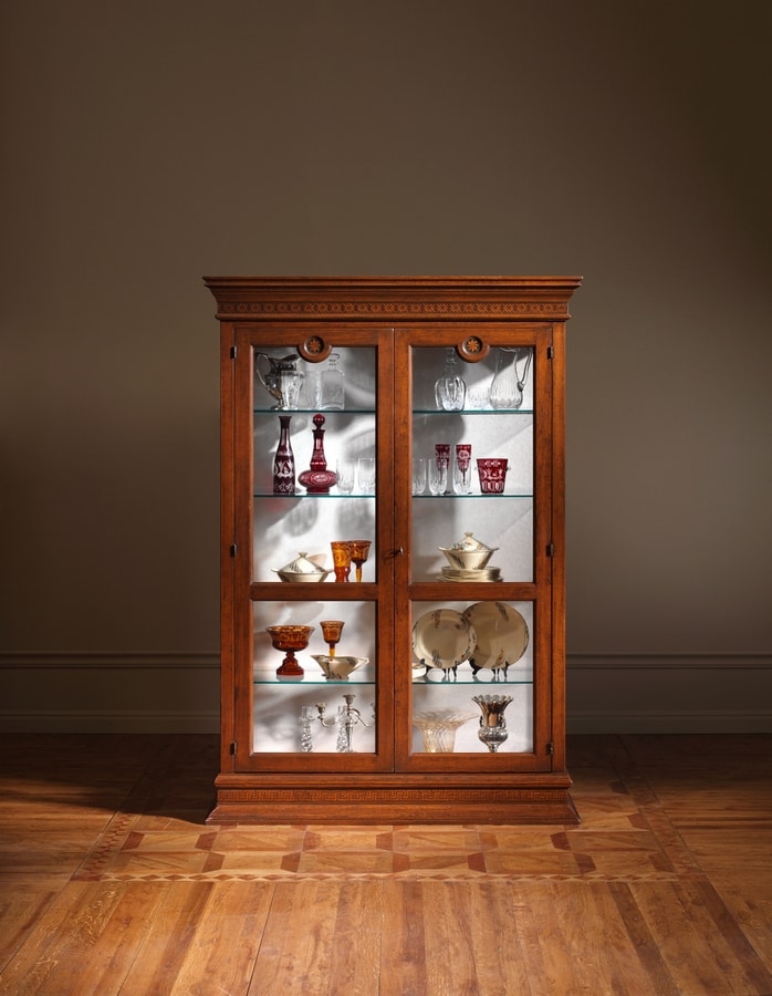Vetrina '400 fiorentino a due ante e quattro ripiani in vetro