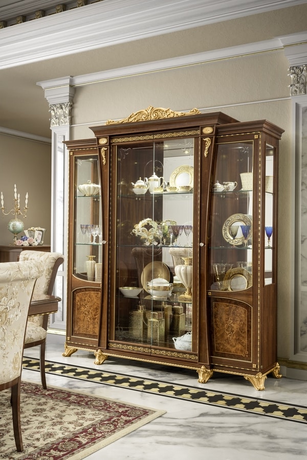 Vetrina a 4 ante, con schienale a specchio. Ripiani interni in cristallo.