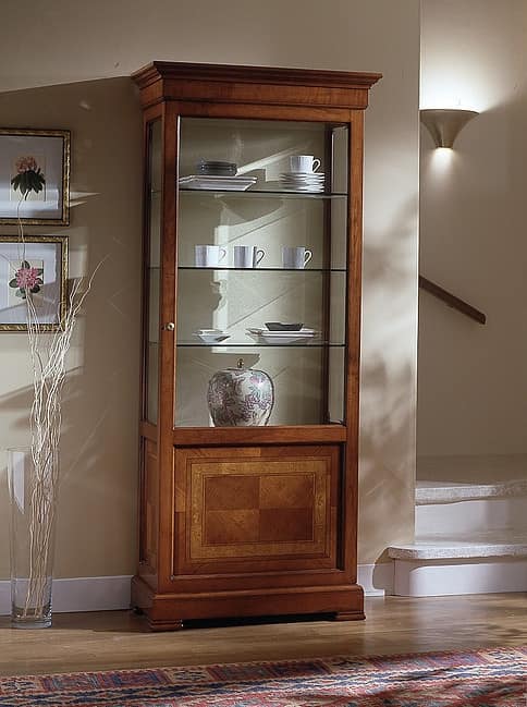Vetrina classica in ciliegio, con intarsio floreale