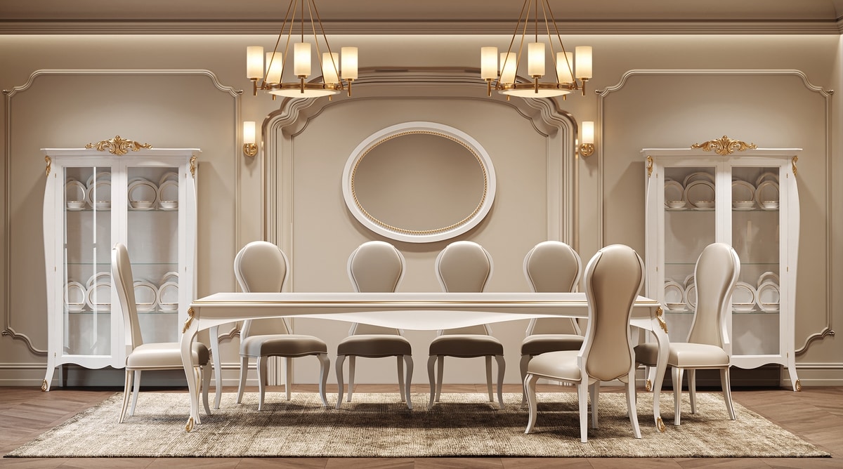 Elegante vetrina stile classico, in legno laccato bianco
