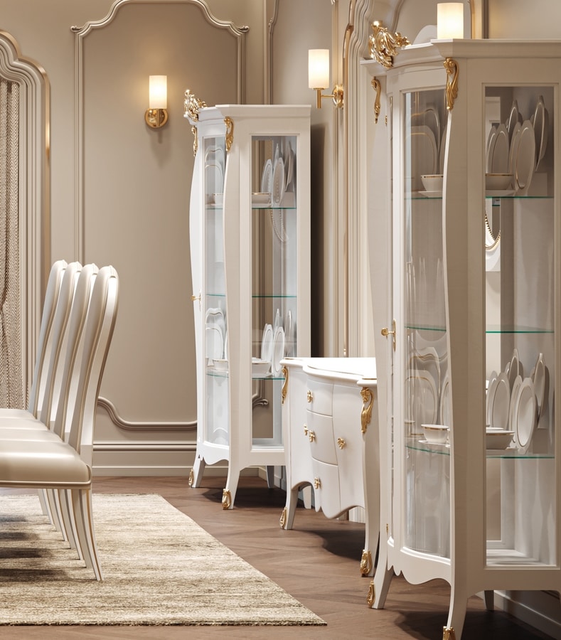 Vetrina laccata, con corona decorativa oro