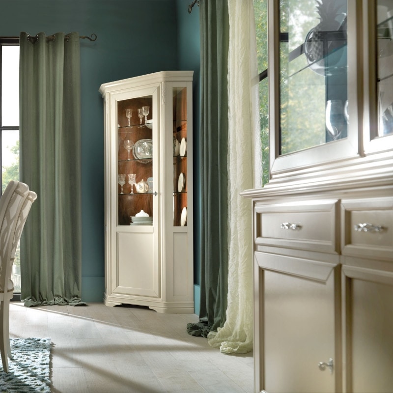 Richiedi prezzi Prodotti similiVetrina ad angolo di gusto seicentesco. Dotata di un’anta a vetro liscio, è caratterizzata da piccoli elementi intagliati e da profili molto decorativi. Spalle leggermente intagliate. Tre ripiani in vetro nella parte a vista con una tramezza fissa e un ripiano nella parte chiusa.