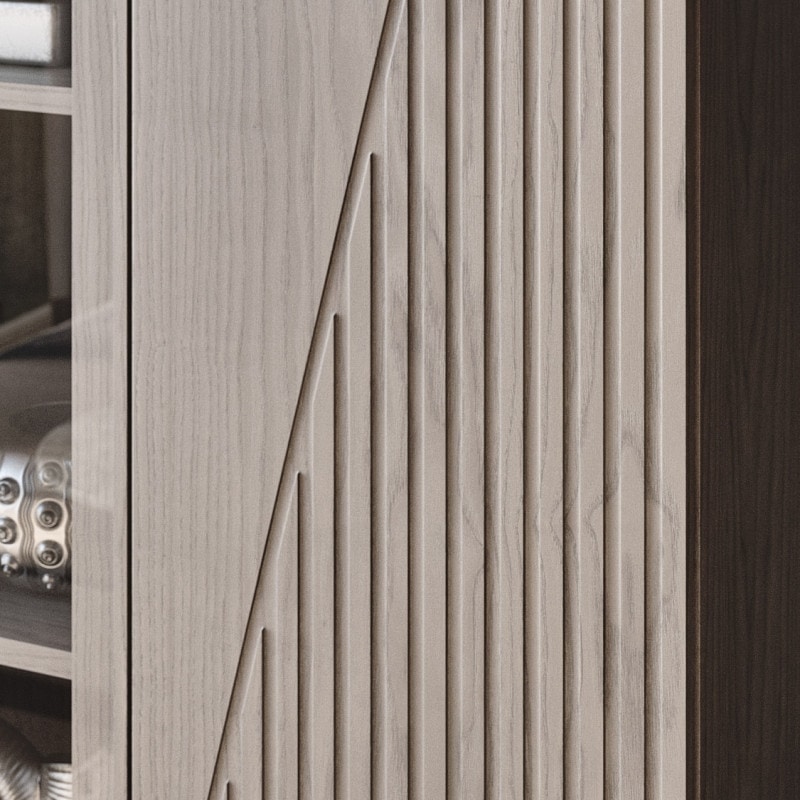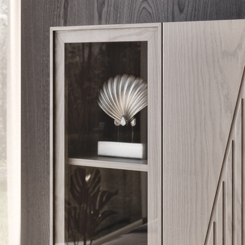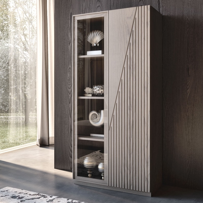 Richiedi prezzi Prodotti similiVetrina a due porte con anta legno e anta vetro, affiancate in verticale. Luce led opzionale. Il design essenziale ma non banale è enfatizzato dalle righe incise ricavate nella porta.