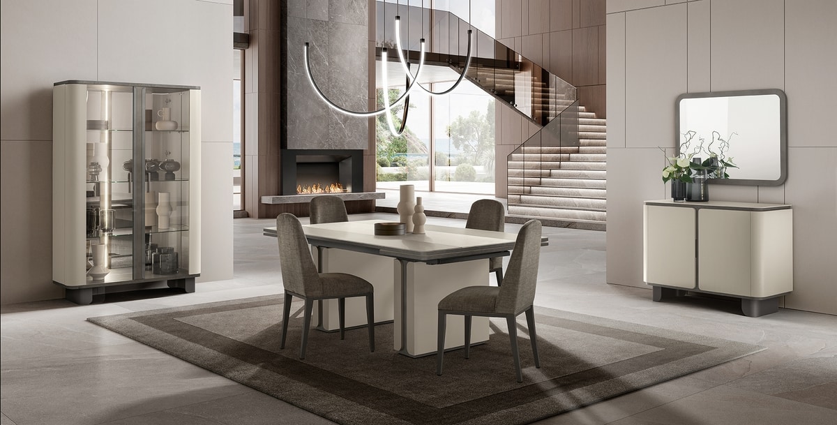 Protagonisti assoluti sono i volumi avvolgenti, le stondature leggere e le curvature dei fianchi, che trasmettono una sensazione visiva e tattile di continuità e accoglienza. Un design morbido, che supera il rigore per abbracciare uno stile più intimo e caldo, mantenendo una chiara impronta di modernità. La palette cromatica gioca su un’elegante dualità tra il grigio antracite e il grigio perla: un contrasto calibrato con maestria, che dona ritmo visivo agli ambienti senza mai sovraccaricarli. Ogni elemento è pensato per dialogare con gli altri, per sviluppare un progetto d’arredo distintivo e coerente. Perla non si impone, ma si rivela: una collezione pensata per ambienti raffinati, in cui il lusso non è ostentazione, ma attenzione alla qualità dei materiali, alle proporzioni e alla luce. Ogni curva, ogni finitura, ogni accostamento cromatico racconta una storia di equilibrio e misura. Un’eleganza discreta ma riconoscibile, che rende ogni spazio unico, accogliente e straordinariamente attuale.